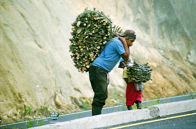 What they are doing is they are gathering and bringing home what they call "leña" which they use for heating their stove to cook.